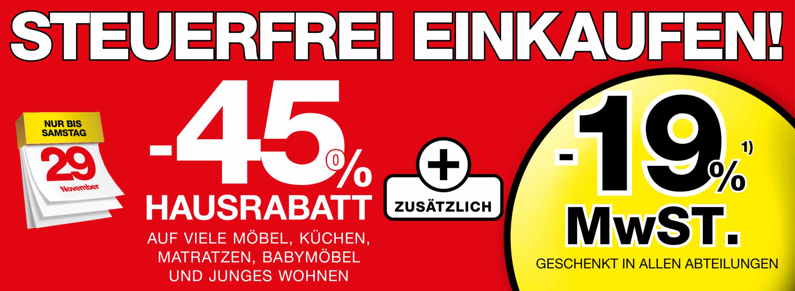 Mind. 45% Hausrabatt auf viele Möbel, Küchen, Matratzen, Junges Wohnen, Gartenmöbel, Teppiche.